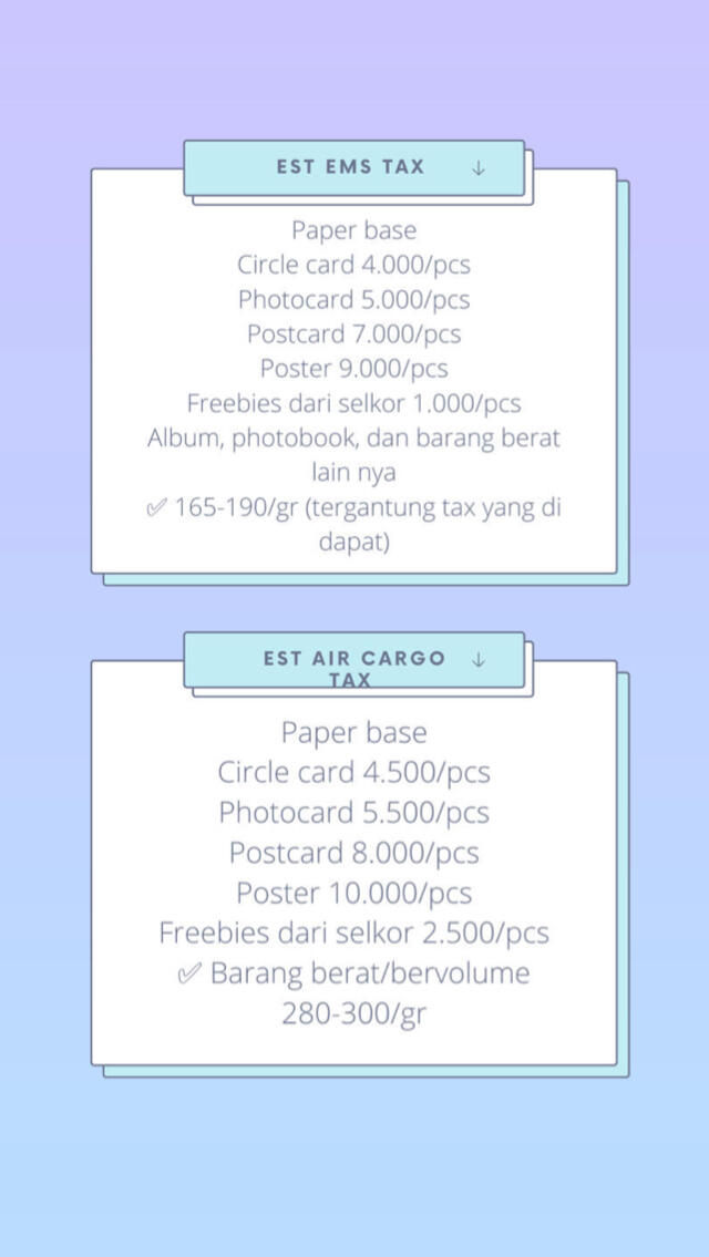 ‼️ FREE FEE WH UNLIMITED WEIGHT ‼️✅FREE FEE WH UNTUK SEMUA JENIS KIRIMAN, BERAT BERAPAPUN (HANYA MEMBAYAR EMS/CARGO TAX + PACKING DI INA)📌 EMS & EXPRESS RUTIN SETIAP MINGGU🌸 Estimasi EMS Tax : 190-195/gr